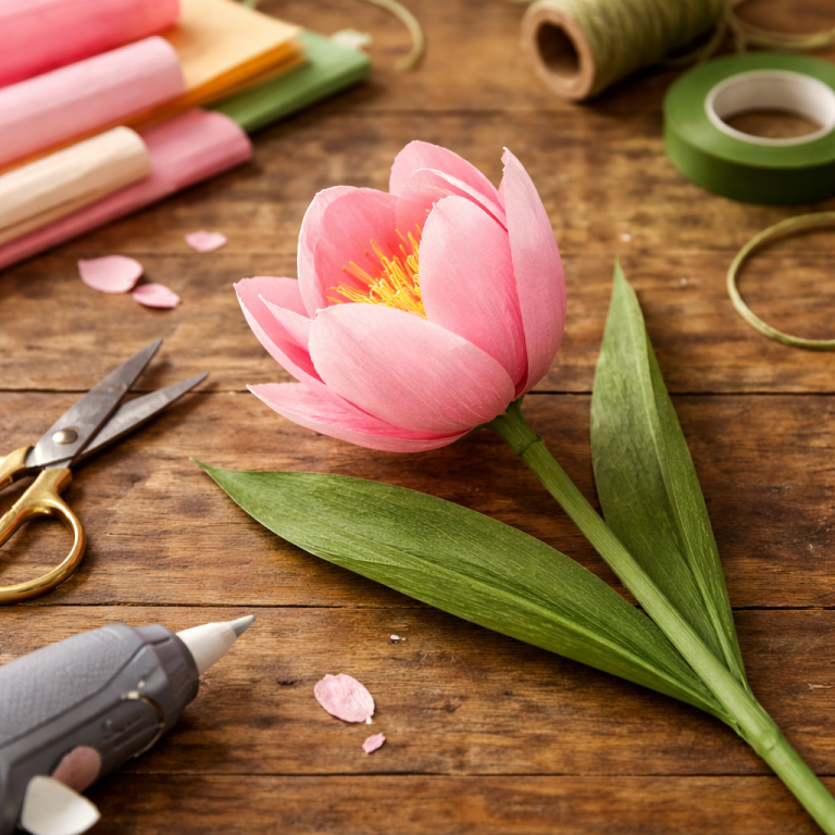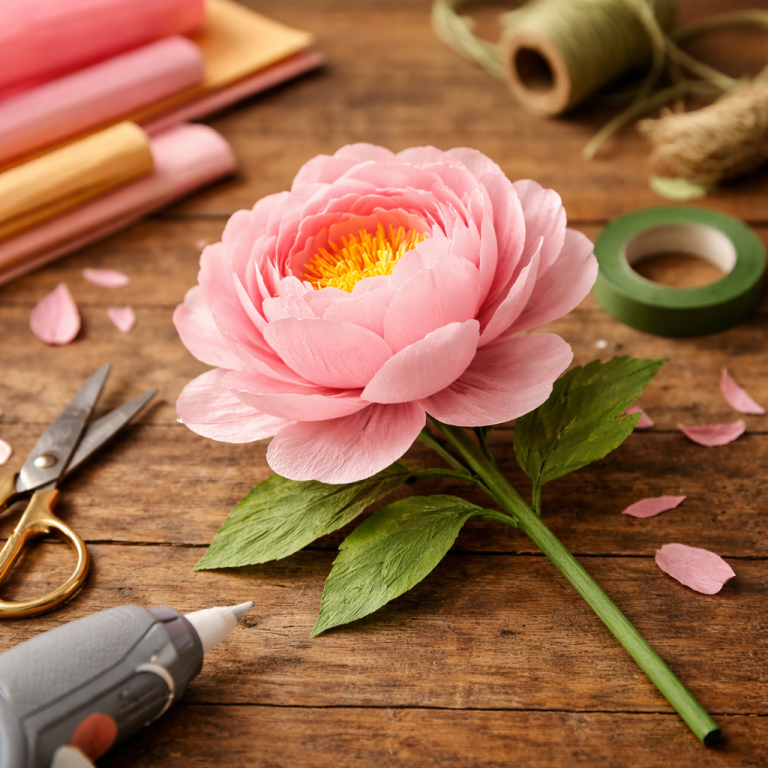 Eine Papier-Pfingstrose wirkt zart und üppig zugleich – perfekt als Tischdeko, Geschenkidee oder Highlight im Frühlingsstrauß. Und das Beste: Sie sieht kompliziert aus, ist aber mit etwas Geduld gut machbar.