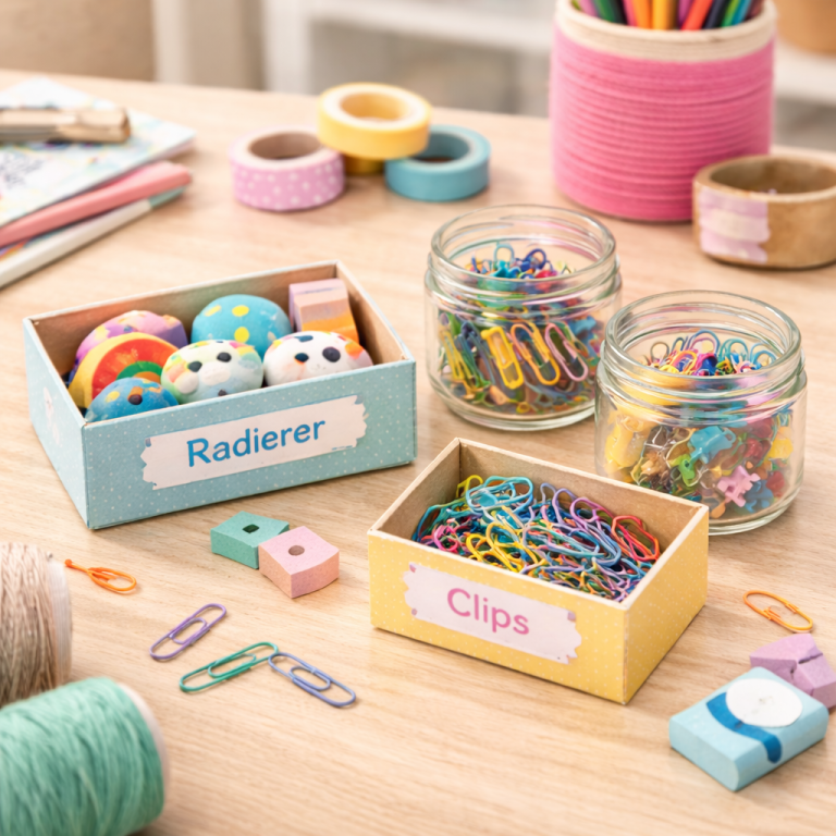 Ob für Grundschule, Teenager oder Homeoffice – hier findest du 12 kreative und praktische Bastelideen für den Schreibtisch, die du ganz einfach selbst umsetzen kannst – viele davon nachhaltig aus Recyclingmaterial.
