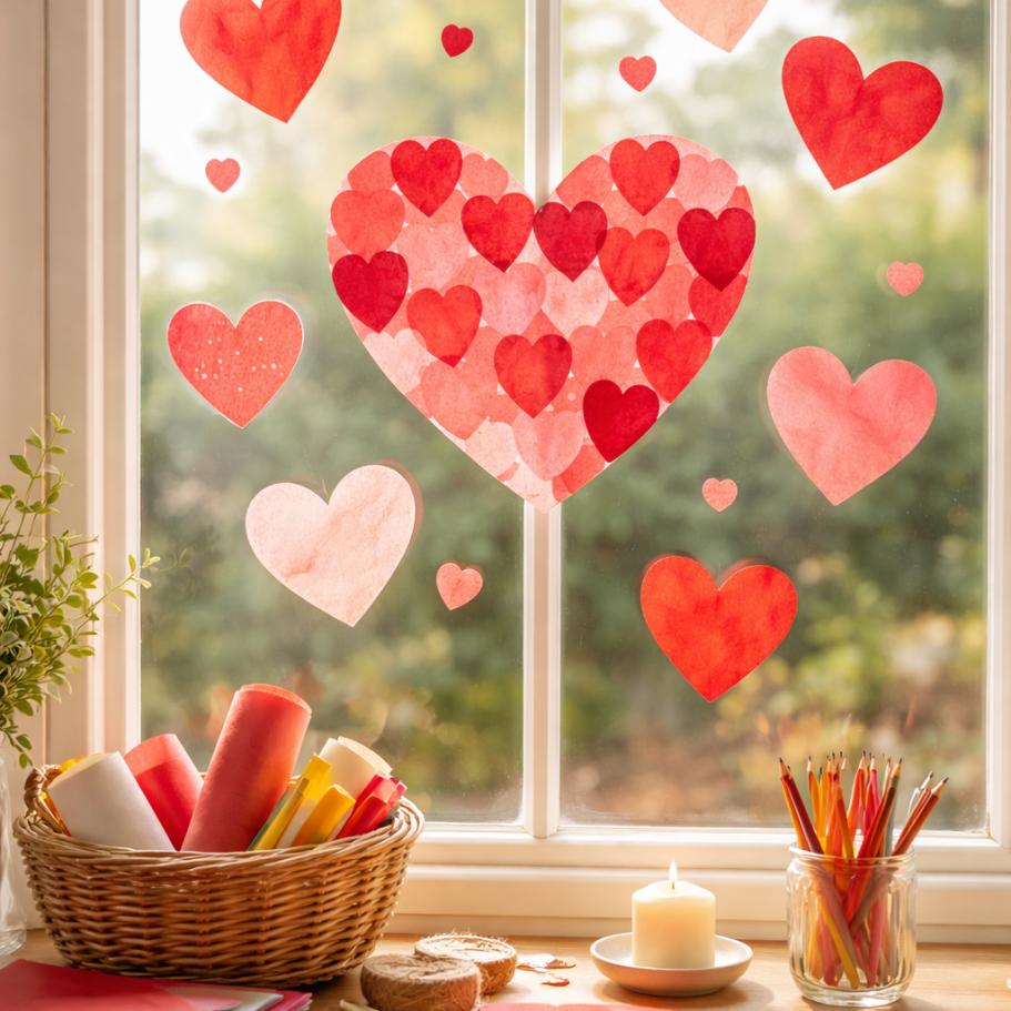 2. Valentins-Fensterbilder – schlicht & gemütlich