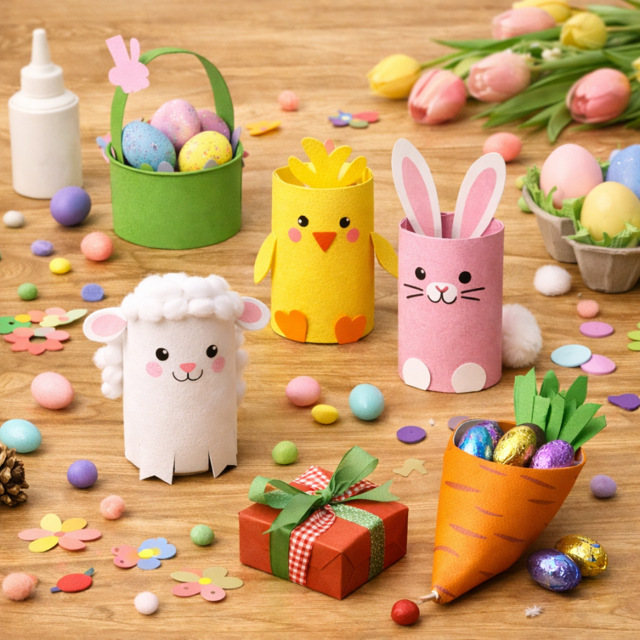 süße Figuren, wie Schäfchen, Hasen und Küken
