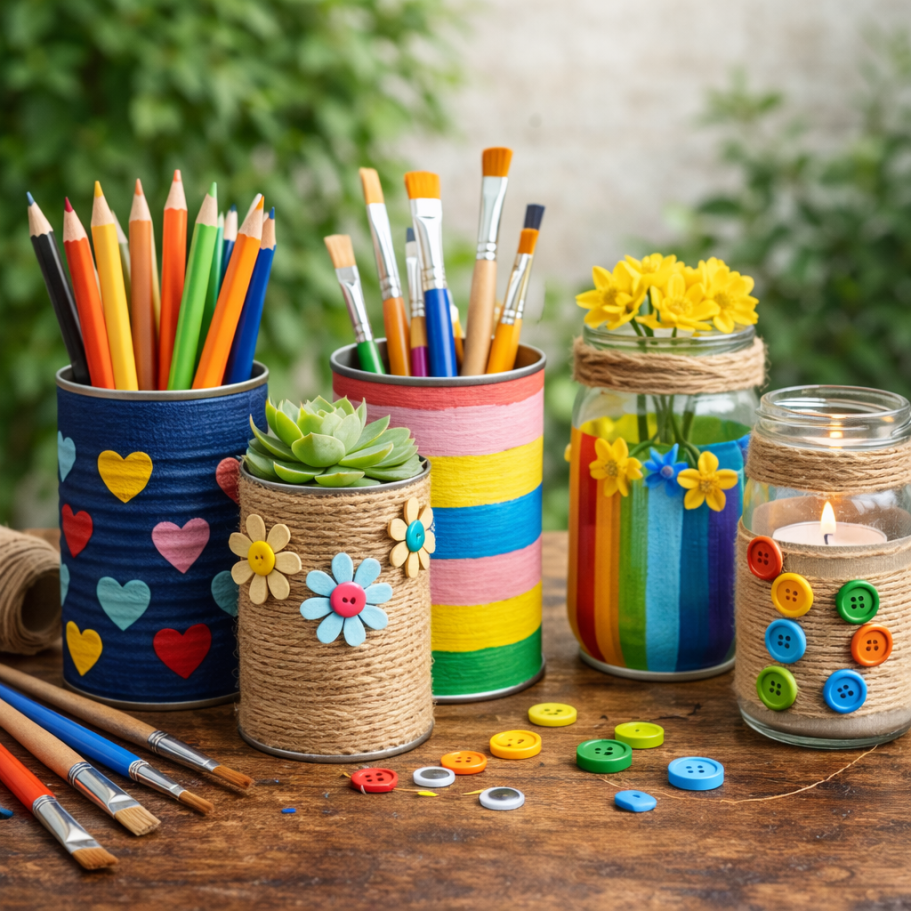 Leere Dosen oder Gläser eignen sich wunderbar für einfache Projekte.