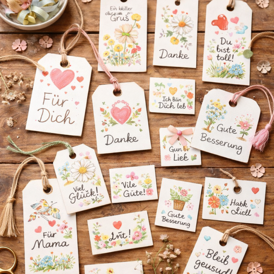 für Geschenkanhänger, Wunschgläser, kleine Bündel