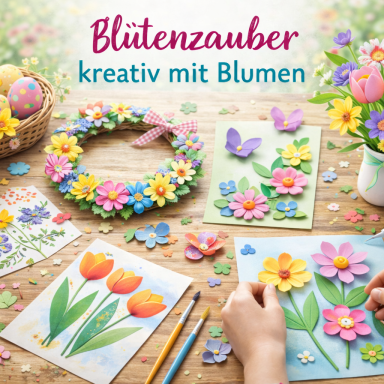 Hier findest du vier Themenwelten voller kreativer Ideen – vom Blütenzauber über nachhaltige Projekte bis zu fröhlichen Familienaktionen.