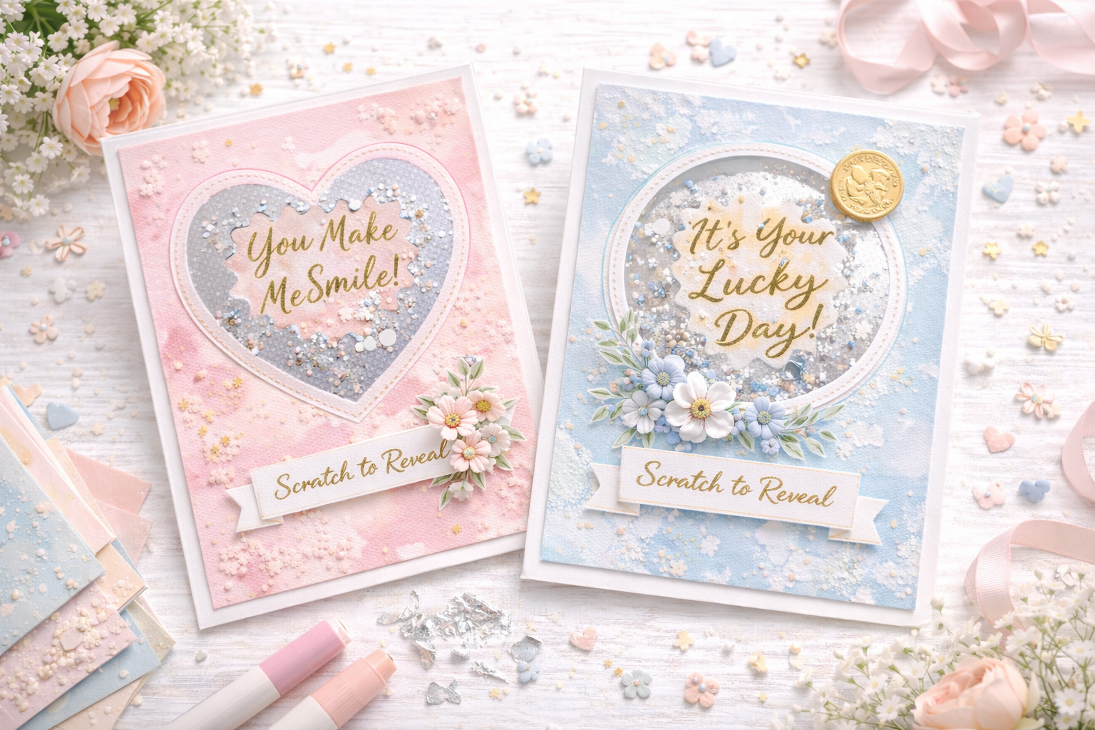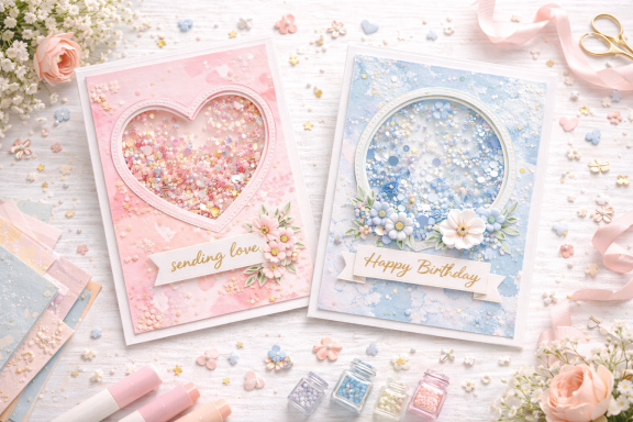 Schüttelkarten: Klarsichtfenster mit Pailletten, Glitzer oder Konfetti