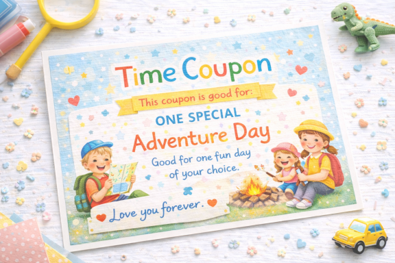 Gutschein- oder Zeitkarten („Picknick“, „Vorlesen“, „Zeit zu zweit“)