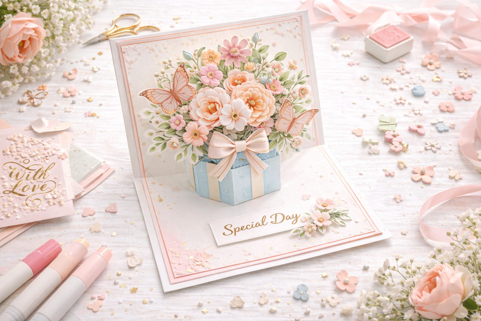Pop-up-Elemente: Herzen, Sterne, Blumen