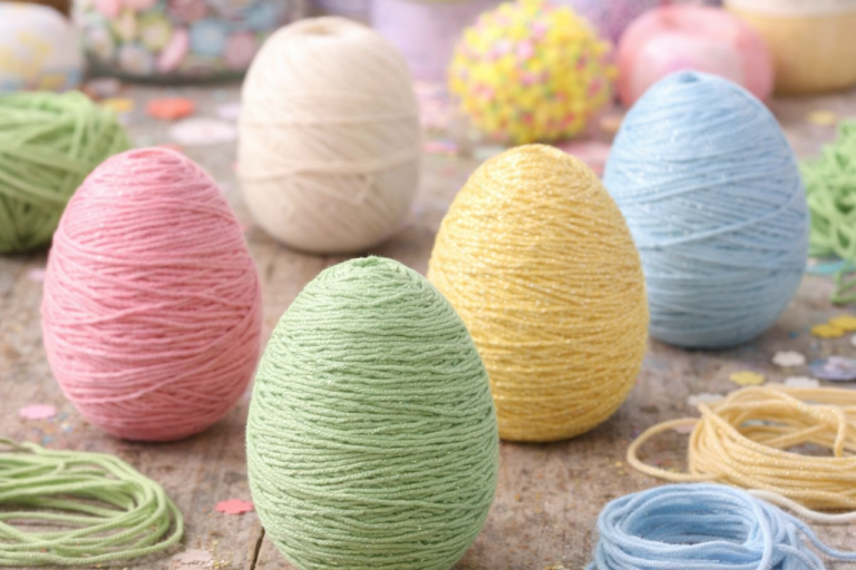 Eier mit Garn umwickeln