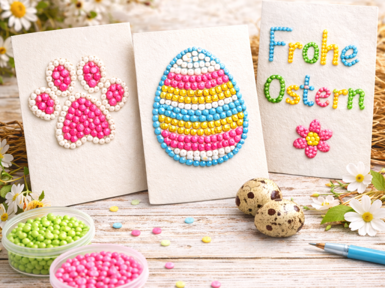 Wer Diamond Painting liebt, kennt das Problem: Am Ende eines Projekts bleiben oft viele kleine Steinchen übrig. Viel zu schade zum Wegwerfen! Gerade für Osterdeko eignen sich diese funkelnden Mini-Steine perfekt, denn sie bringen Farbe, Glanz und Struktur in deine Bastelideen.