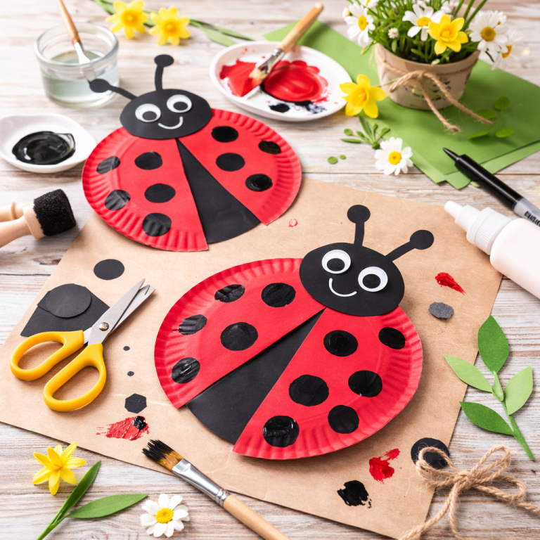 Aus Papptellern entstehen zuckersüße Marienkäfer