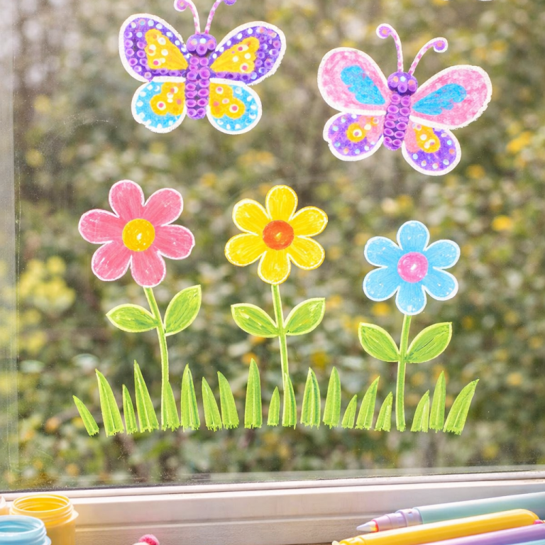 Frühlings-Fensterbilder mit Kreidestiften