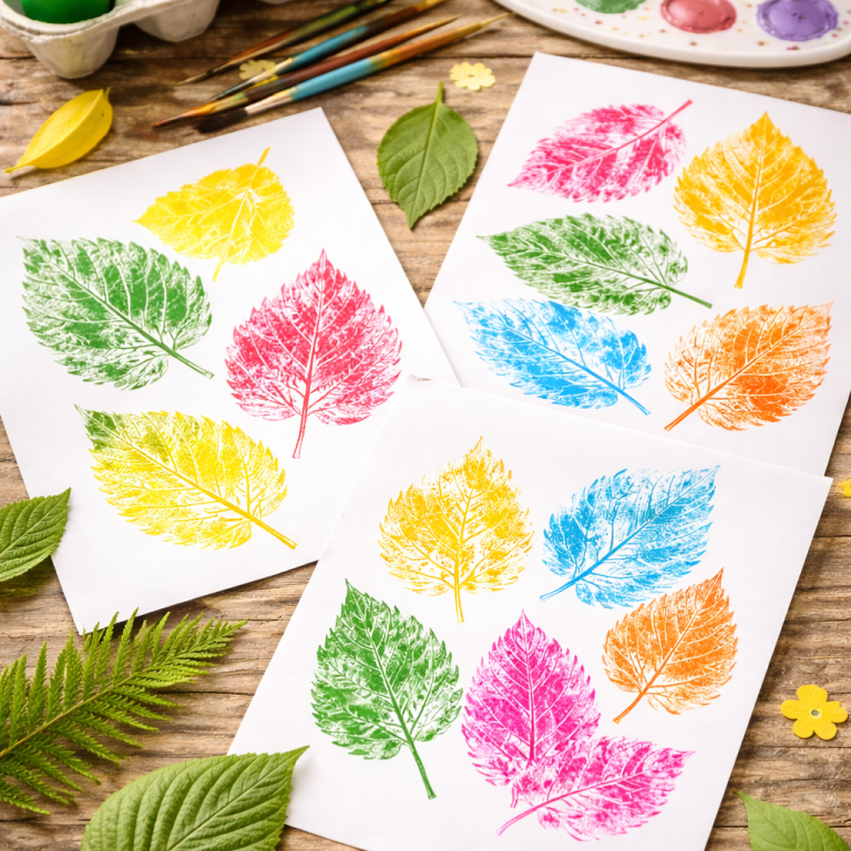Frische Blätter mit Farbe bestreichen und auf Papier drücken – wunderschöne Naturmuster entstehen.