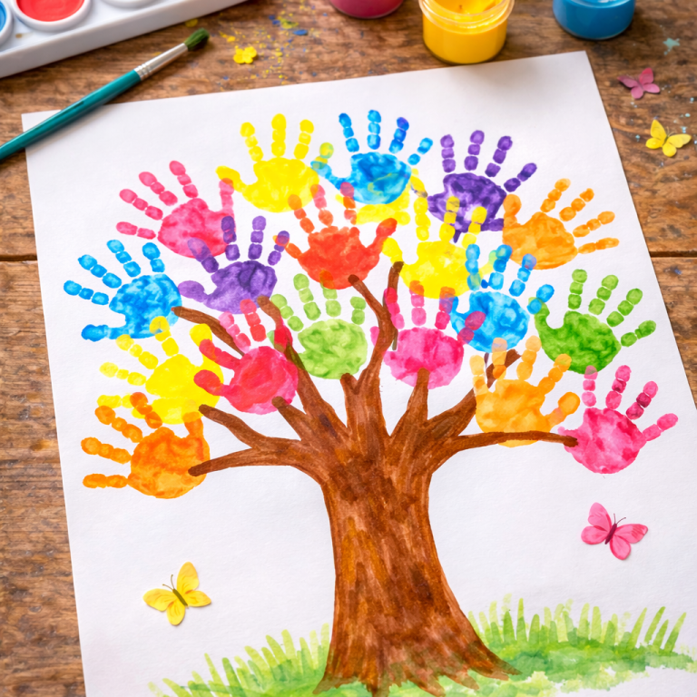 Frühlingsbaum aus Handabdrücken