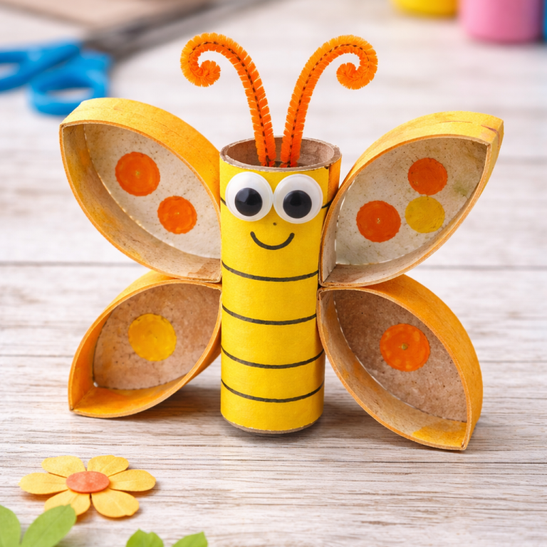Aus Toilettenpapierrollen bunte Schmetterlinge basteln